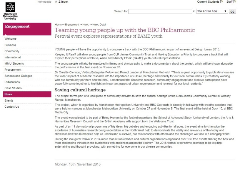 Manchester Metropolitan University in partnership with BBC Outreach to host event for national humanities festival, 15.11.15